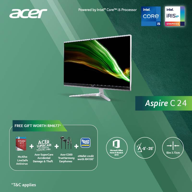 Pre-installed with Microsoft Office Home & Student 2019, Aspire C24-1651 All-in-One desktop comes in two variants. The 11th Gen Intel® Core™ i5 processor with Intel® Iris® Xe Graphics variant is price at RM3,599 with VESA mount kit in the box, while the 11th Gen Intel® Core™ i3 processor with Intel® UHD Graphics variant is priced at RM3,199.