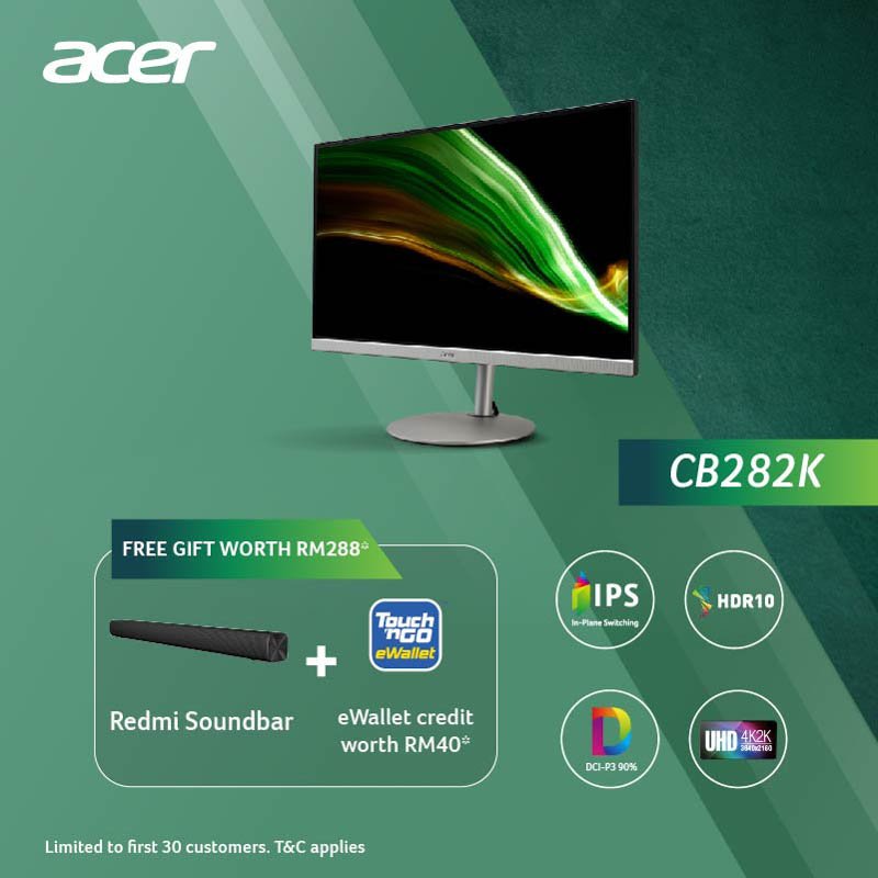 Meanwhile, for users who prefer ergonomic design and better colour accuracy, the Acer CB282K monitor features 28-inch 4K UHD resolution with 90% DCI-P3 and HDR10 color accurate display to deliver vivid and lifelike contrast. It comes with flexible ergonomic design that allows users to adjust tilt, swivel, height and pivot according to their comfortability.