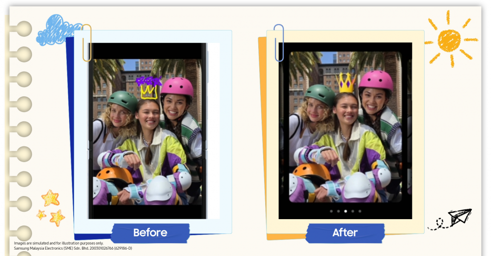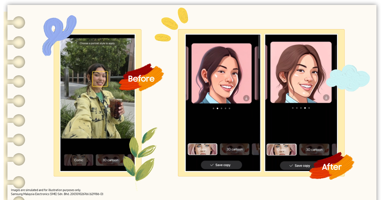 With Galaxy AI’s Drawing Assist that brings ideas to life through sketches, text or image prompts, you can add in creative elements like crowns, balloons and more, with the option to choose from different styles like Watercolor, Illustrations, Sketch, Pop Art, and 3D Cartoon.